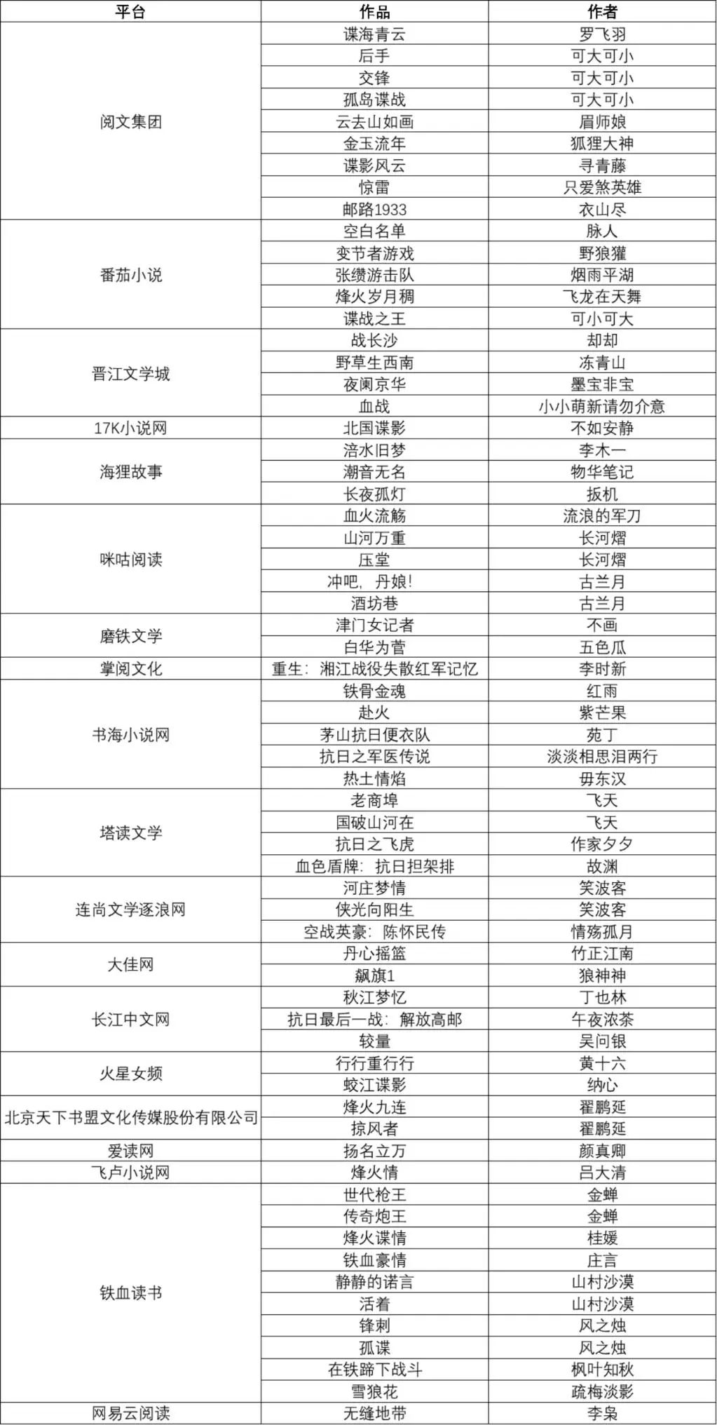 活動期間,涌現(xiàn)出一批優(yōu)秀抗戰(zhàn)題材網(wǎng)絡(luò)文學作品。2025年度中國作家協(xié)會網(wǎng)絡(luò)文學重點作品扶持項目特設(shè)“中國人民抗日戰(zhàn)爭暨世界反法西斯戰(zhàn)爭勝利80周年”主題專項,羅飛羽《諜海青云》等7部作品入選。同時,各大網(wǎng)絡(luò)文學平臺也紛紛推出繼承革命文化、書寫抗戰(zhàn)精神的網(wǎng)文佳作。這些作品以可歌可泣的民族英雄形象,展現(xiàn)了天下興亡、匹夫有責的愛國情懷,視死如歸、寧死不屈的民族氣節(jié),不畏強暴、血戰(zhàn)到底的英雄氣概,百折不撓、堅忍不拔的必勝信念。