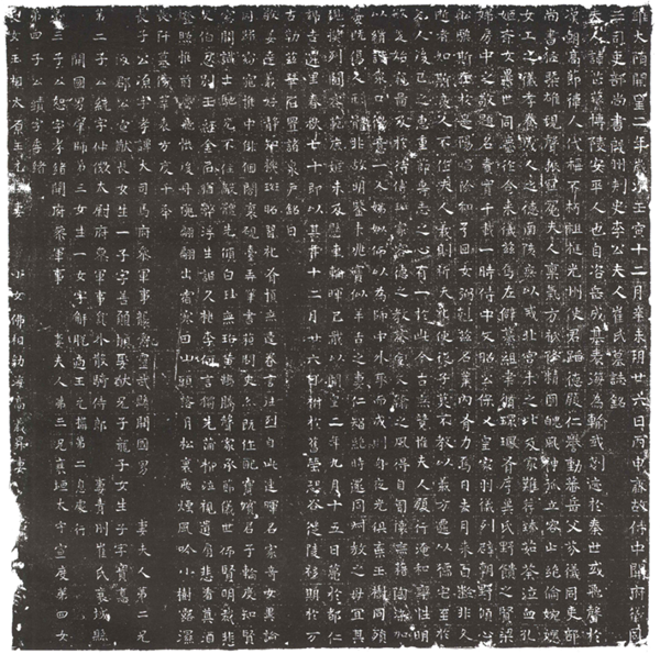 崔芷蘩去世在隋開皇二年(582),又是一個嶄新的時代,由于崔仲方的功績,博陵崔氏再度崛起。崔芷蘩的喪禮很可能是哥哥崔宣猷或侄子崔仲方主持完成。她的墓志尺寸達到驚人的81×82厘米,遠超家族中的男性成員。比如她的叔叔崔孝直的墓志尺寸是73×71厘米,哥哥崔宣度的墓志尺寸為63.5×64厘米。并且,《崔芷蘩墓志》的尺寸極有可能大于《李希仁墓志》。盡管《李希仁墓志》的具體情況尚未刊布,但李希仁的哥哥李希宗的墓志也不過62×62厘米。今已知尺寸最大的北朝女性墓志當屬《魏瑤光寺尼慈義墓志》,為83×84厘米。志主高英生前曾是北魏宣武帝元恪的皇后。換言之,崔芷蘩的墓志大小幾與皇后相近。但是她本人生前未曾得到任何加封,死后也沒有追贈,因此如此“異?!钡某叽缰挥锌赡艹鲎詥始宜饺诵袨?。也許是因為崔仲方新朝權貴的地位,也許是崔宣猷出于對最后一位姊妹的痛悼,《崔芷蘩墓志》才呈現(xiàn)出如今面貌。