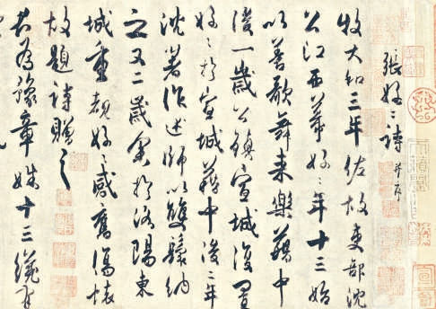 《張好好詩帖》傳承有序,經(jīng)南宋賈似道,明代項元汴、張孝思,清代梁清標(biāo)、宋牧仲、年羹堯,最終入清內(nèi)府,董其昌曾跋:“樊川此書,深得六朝人風(fēng)韻?!辟澠鋾?,但推敲詩意,益覺杜牧的人格磊落。