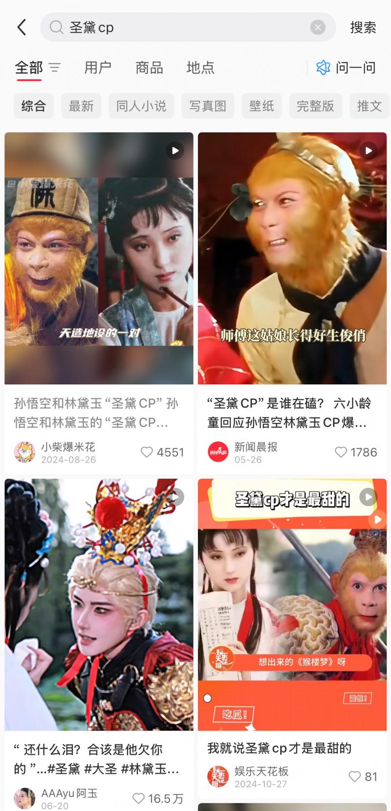 早在今年上半年,“圣黛CP”這個奇特的稱謂忽然在互聯(lián)網(wǎng)上流行起來。有網(wǎng)絡(luò)博主將《西游記》里的孫悟空與《紅樓夢》里的林黛玉湊成一對情侶。這個新穎而奇怪的組合迅速吸引了廣大網(wǎng)友的注意力。對此,有媒體記者就相關(guān)內(nèi)容詢問86版《西游記》孫悟空扮演者六小齡童,他給出了較為正面的反饋,再次拉高了“圣黛CP”的熱度。有網(wǎng)友戲稱,曹雪芹和吳承恩去世多年后,發(fā)現(xiàn)居然成親家了。