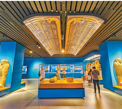 聯(lián)動各行各業(yè)——配合展覽,上博打造“一站式”文旅體驗新場景系列活動。“從尼羅河到黃浦江”的“上博號”古埃及主題游船、古埃及主題“上博觀展巴士”、“空中博物館”——“上博號”彩繪大飛機,與上海重點商圈、企業(yè)打造“文旅商體展”聯(lián)動的示范樣板……展覽猶如“磁場”,帶動了周邊商業(yè)、酒店、旅游、演出等消費。