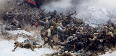 大刀向鬼子們的頭上砍去(油畫) 晏 陽作
