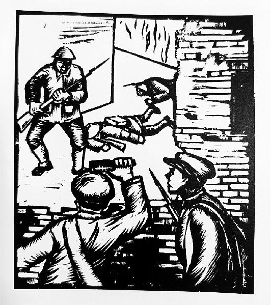 陳煙橋《巷戰(zhàn)》(黑白木刻,1932年)