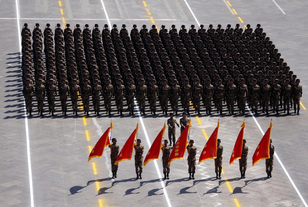 2015年9月3日,中國人民抗日戰(zhàn)爭(zhēng)暨世界反法西斯戰(zhàn)爭(zhēng)勝利70周年紀(jì)念大會(huì)在北京隆重舉行。這是“平型關(guān)大戰(zhàn)突擊連”英模部隊(duì)方隊(duì)接受檢閱。新華社記者 費(fèi)茂華 攝
