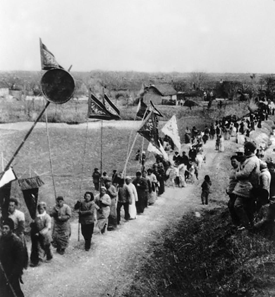 1943年冬,在蘇北抗日根據(jù)地,群眾紛紛將自己的子弟送到新四軍中(資料照片)。新華社發(fā)