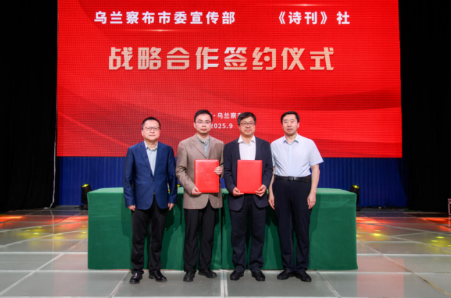 9月6日,中共烏蘭察布市委宣傳部與《詩刊》社共同簽署了一項(xiàng)為期五年的戰(zhàn)略合作協(xié)議,旨在通過舉辦詩會、研學(xué)等系列文化活動,建設(shè)詩歌創(chuàng)閱中心,深入推動當(dāng)代文學(xué)與烏蘭察布文化旅游融合發(fā)展。中國詩歌網(wǎng)總編輯金石開與烏蘭察布市委宣傳部常務(wù)副部長賈翮振分別代表雙方簽署協(xié)議。