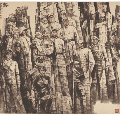 抗戰(zhàn)勝利并不意味著抗戰(zhàn)主題美術(shù)創(chuàng)作的停止。一方面,抗戰(zhàn)勝利是中國近代歷史上第一次抗擊外敵入侵的完全勝利,抗戰(zhàn)的恢宏畫卷以及抗戰(zhàn)中涌現(xiàn)出的無數(shù)可歌可泣的英烈不斷激發(fā)美術(shù)家的創(chuàng)作激情,抗戰(zhàn)歷史成為中國現(xiàn)代美術(shù)最富有民族精神的題材富礦;另一方面,人民戰(zhàn)爭思想、黨在領(lǐng)導(dǎo)全民族抗戰(zhàn)中的中流砥柱作用,也需要通過藝術(shù)再現(xiàn)凝固為國家歷史記憶。
