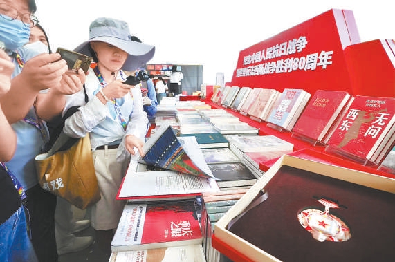 紀(jì)念中國人民抗日戰(zhàn)爭暨世界反法西斯戰(zhàn)爭勝利80周年專臺呈現(xiàn)了《烈火芳菲》等圖書,并有紀(jì)念郵票一同發(fā)行。 北京日報記者 程功攝