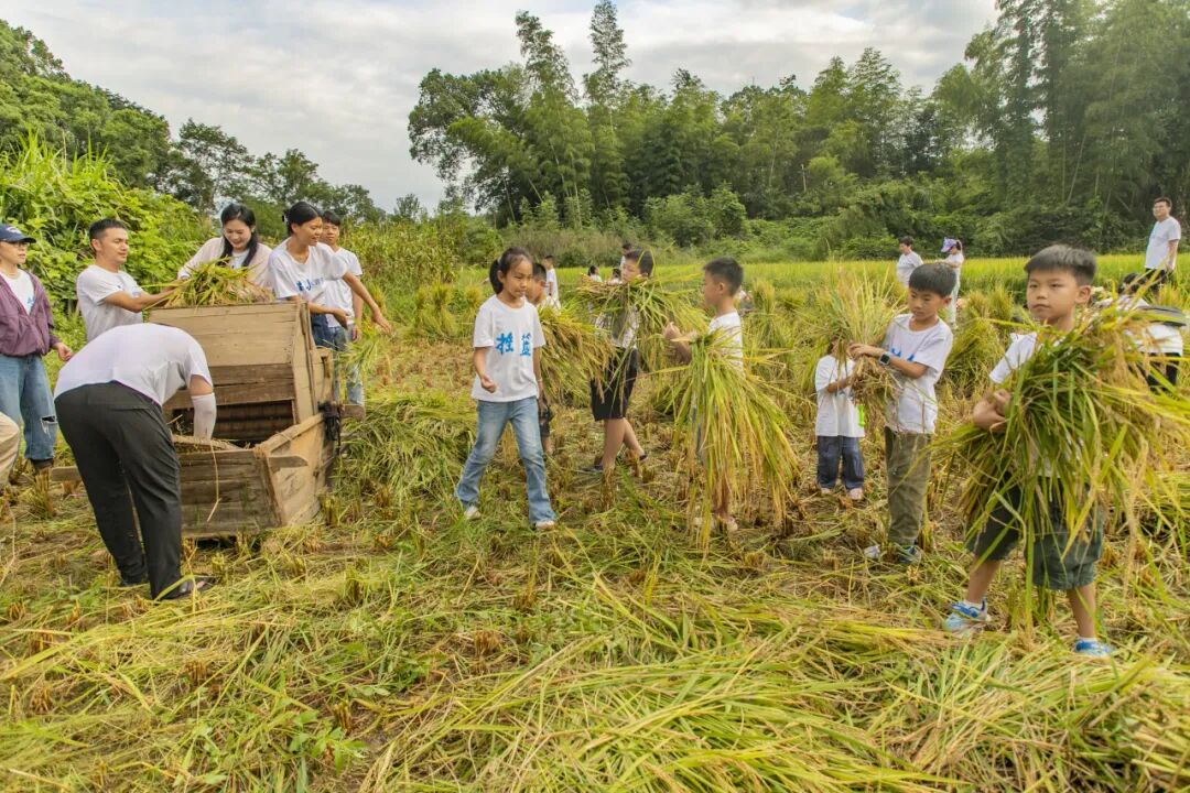 開鐮了!在家長的帶領(lǐng)下,《搖籃》寶寶們有的揮動鐮刀割稻子,有的給在打谷機(jī)邊忙碌的家長運送稻子,有的埋頭撿拾散落在田間的稻穗,有的扎草垛和稻草人,稻田里到處是忙碌快樂的小身影。經(jīng)過一個下午的緊張勞動,秋收任務(wù)終于完成。