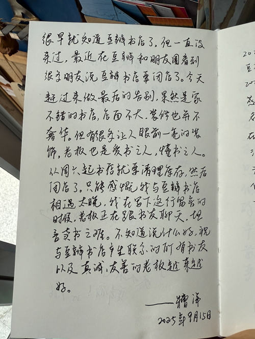 “每個來到豆瓣書店的讀者,都會跟這里產(chǎn)生交集和連接。書店像一個容器,承載著讀者當下的青春和境遇,當他再次來到書店,就會想起當年的心境,或愉悅,或困頓,就好像他的青春和書店糾纏在了一起?!鼻渌烧f,“就像15日那天有兩位讀者特別感慨。一位是60多歲的老讀者,他說:‘豆瓣書店要閉店了,我也老了。’他是感懷他的青春;還有一位是20多歲的年輕人,說他小時候就來過這里,也曾帶著女朋友來過,就好像豆瓣書店見證了他的成長?!?/p>