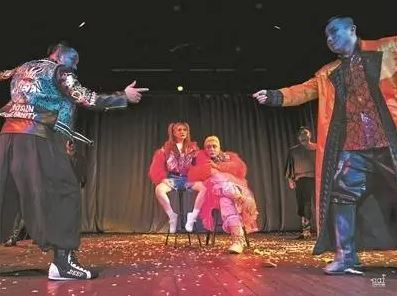 早在觀眾入場時,羅森格蘭茲和吉爾登斯吞就已經在臺上一本正經地玩起了拋硬幣的游戲,更凸顯了這一行為的日常性和持久性。從劇場形態(tài)、燈光設計及觀演互動等外在形式可以看出,這版《羅吉》力圖打破舞臺幻覺,與傳統(tǒng)的自然主義演劇方式區(qū)別開來。此外導演還將原劇本中一些隱晦的、具有文化隔閡的梗進行了轉譯,更便于中國觀眾理解,同時增加了一層連接現(xiàn)實的意味。
