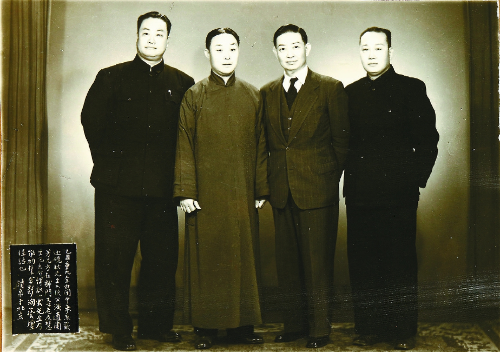 1949年9月初,梅蘭芳因參加新中國第一屆政治協(xié)商會(huì)議與開國大典,再度回京。據(jù)許文記載,10月,自西安赴京邀約程劇團(tuán)的趙清泉,與許商議,想請四大名旦合影一次留作紀(jì)念。當(dāng)時(shí)程劇團(tuán)正在天津演出,等程硯秋返京,梅劇團(tuán)又要赴天津演出,很難碰頭。正巧舊劇科的王頡竹拿著北京市政府救災(zāi)委員會(huì)的信向梅蘭芳接洽,想組織一場四大名旦同臺的義演。梅蘭芳于是推遲原計(jì)劃10月28日開始在天津的營業(yè)戲,義演定于10月29日。許姬傳在《梅邊瑣記》里專有一篇《梅尚程荀會(huì)串》,詳記了此場演出。劇目有張?jiān)葡⑸虚L春《白水灘》,馬富祿、小翠花《打刀》,尚小云、荀慧生《樊江關(guān)》,大軸是《回荊州》,程硯秋、梅蘭芳分飾前后孫尚香,譚富英飾劉備,奚嘯伯飾喬玄,楊寶森飾魯肅,裘盛戎飾孫權(quán),侯喜瑞飾張飛,李多奎飾吳國太,蕭長華飾喬福,于世文(許文記為楊盛春)、孫毓堃分飾前后趙云。這個(gè)陣容蔚為大觀,幾乎集合了當(dāng)時(shí)北京京劇界所有一流演員,四大名旦同臺更是多年未見。