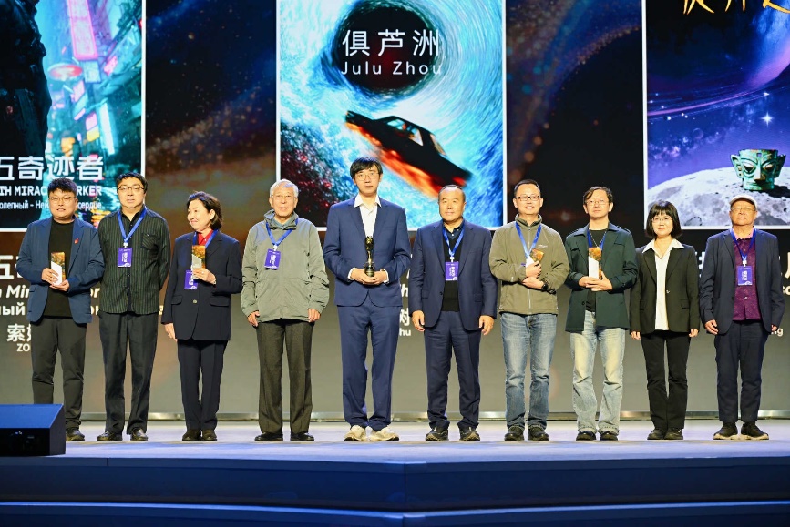 發(fā)布會上,頒發(fā)了十個單元類別的獎項,武虹《如愿》獲最佳科幻電影劇本獎; 何夕原著、萬象凌云創(chuàng)作的《六道眾生》獲最佳幻想類游戲劇本獎;京東方藝云科技的《啟程:火星》VR大空間航天數(shù)字探索展獲最具影響力IP轉(zhuǎn)化案例;寶樹《俱蘆洲》獲最佳未來同行者作品獎;《群星》《三體漫畫(第一部)》《時空畫師》《黑暗森林》《死神永生》《荒潮》《時間的救贖》《夏之夢:夏茄英文短篇集》《醫(yī)院》《球狀閃電》獲“十年十部·最受歡迎的科幻文學(xué)翻譯出海作品”獎;寧夏、李天昊、悟江、于笑笑、劉歆妍、孫九聰、光容霆、李思淇、林思睿、歐陽子毅獲最佳青少年科幻作家獎;《太陽墜落之時》《傻子:殼榮耀與幸存者》《零》《迴》《萬物生》獲年度科幻AI視頻作品獎;段子期《倍速世界》獲最佳短篇科幻作品獎;阿缺《永恒列車》獲最佳中篇科幻作品獎,羅夏《腦中之魔》獲最佳長篇科幻作品獎。