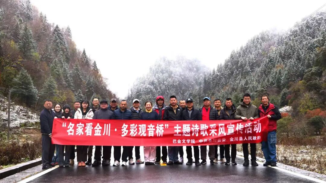10月31日至11月2日,川西高原寒意正濃,金川縣觀音橋地區(qū)大雪紛飛。由巴金文學院、中共金川縣委、金川縣政府主辦的“名家看金川·多彩觀音橋”主題詩歌采風創(chuàng)作活動舉辦,來自巴金文學院的13名簽約作家冒雪前往金川縣觀音橋鎮(zhèn)麥斯卡村、觀音村、毛日藏寨等地,開展“深入生活、扎根人民”主題文學創(chuàng)作活動,在風雪高原中捕捉靈感、汲取創(chuàng)作養(yǎng)分。
