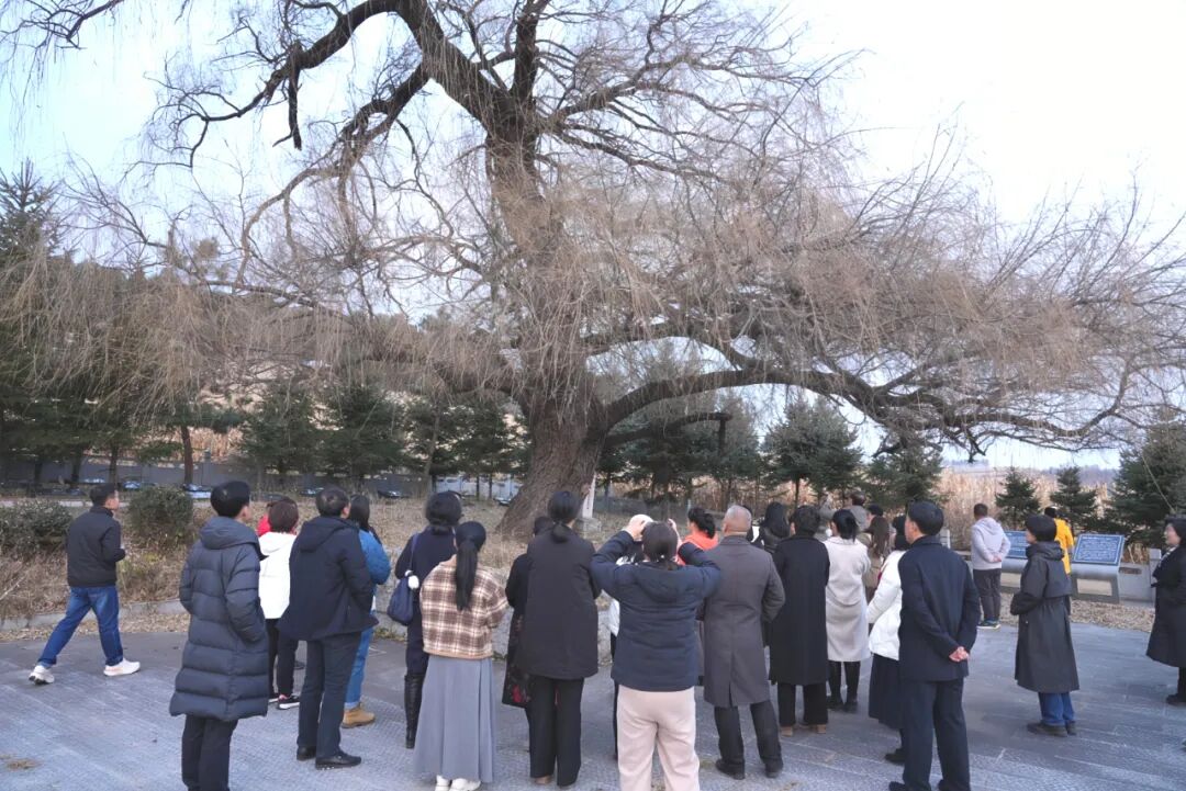 在東北地區(qū)第一個人民政權——和龍市藥水洞蘇維埃政府遺址,講解員為作家們輕聲講解:“在藥水洞這個不到100戶人家的鄉(xiāng)村里,就涌現(xiàn)出金順姬等70多名抗日烈士。藥水洞人民在中國共產(chǎn)黨的領導下,高舉抗日救國的旗幟,始終站在斗爭的最前列,在延邊的抗日斗爭史上譜寫了壯烈詩篇?!痹谶z址碑石旁,有一棵樹冠巨大的百年垂柳,是由樸相活烈士親手栽下的。這棵柳樹歷經(jīng)刀斧砍伐、烈火焚燒等磨難,仍頑強存活、枝繁葉茂,象征著革命精神的永恒不朽?。