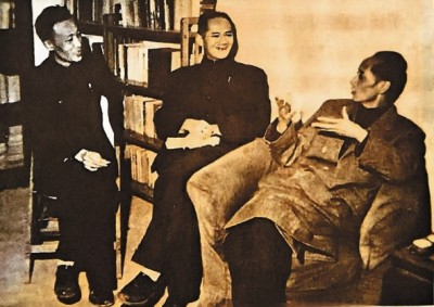 三位《詩刊》負(fù)責(zé)人在一起商談工作。右起臧克家、徐遲、葛洛