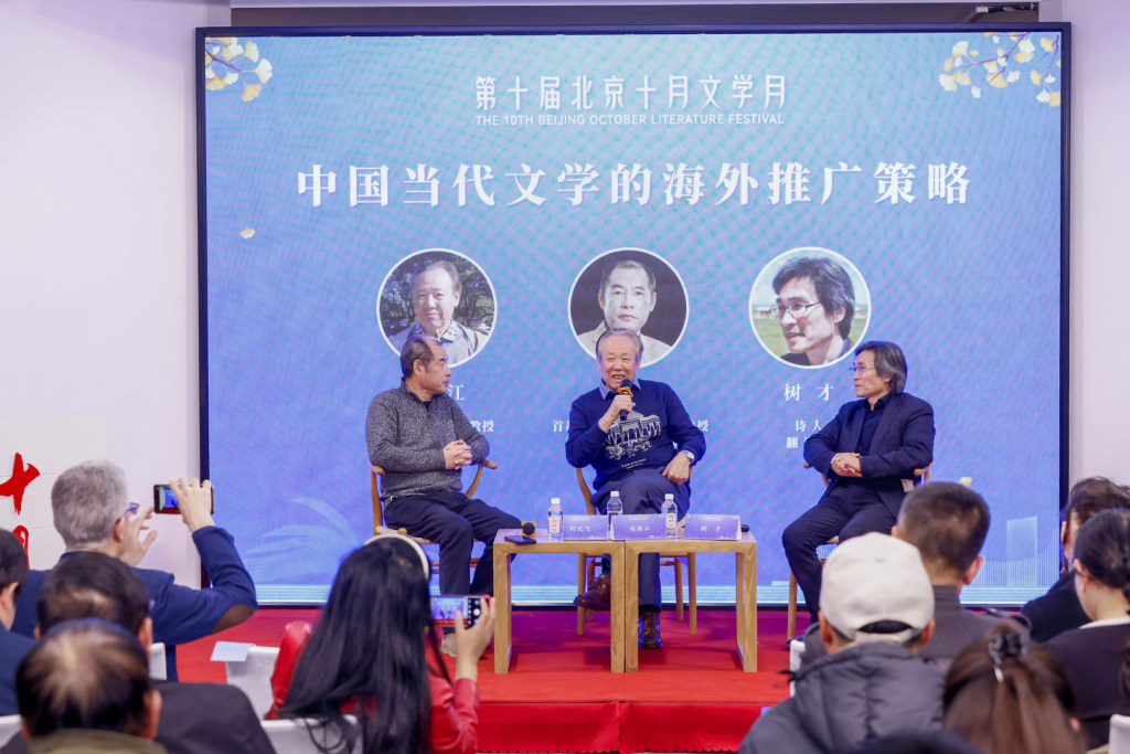 圍繞“中國當(dāng)代文學(xué)的海外推廣策略”的話題,北京大學(xué)西語系教授趙振江、詩人、翻譯家樹才進(jìn)行了對話。