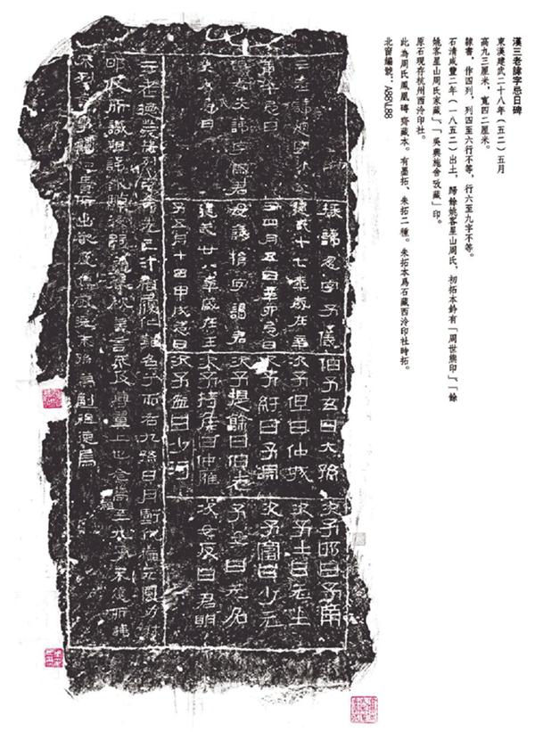 施蟄存藏《漢三老諱字忌日碑》拓片