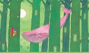 一陣風(fēng)吹過,粉色的小花帽翻了個(gè),露出雪白的里料,帽子下面藏著一朵掛著水珠的月季花。