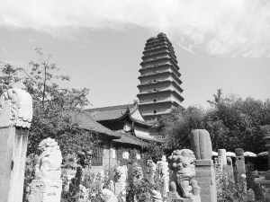 如今,當(dāng)年有著11個院落氣勢的薦福寺只余塔院,唐代的遺存中也僅留下為數(shù)不多的幾個柱礎(chǔ),但歷史所賦予小雁塔的文化脈落卻延續(xù)傳承至今。行走于千年古樹掩映的小雁塔塔院各殿宇之間,明清時期的文化氣息透露出小雁塔的發(fā)展軌跡。由南至北依次排列的南山門、鐘樓、鼓樓、慈氏閣、東西小亭、大雄寶殿、藏經(jīng)樓、方丈殿、白衣閣等單檐或重檐的歇山式建筑,因歷史原因已失去它原本的佛教用途,但建筑本身仍保存得十分完好。這些佛寺特有建筑,是體現(xiàn)小雁塔絲路文化價值特征的一個重要載體。
