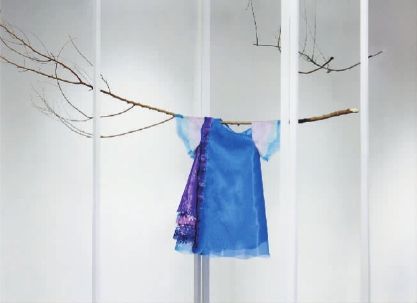 同樣跨界的女藝術(shù)家艾敬,帶來(lái)了她的兩件裝置作品《生命之樹》和《每一扇門里都有鮮花》 ,由數(shù)萬(wàn)雙一次性筷子塑造的枯樹上沒(méi)有果實(shí),沒(méi)有萌芽,但枝椏卻分明地向上生長(zhǎng),站在枝頭的鳥也預(yù)示著生命的到來(lái);半敞的斑駁的木門后,嬌艷綻放的花朵簇?fù)碇侣冻錾孽r活。盡管她演繹的對(duì)象不是敦煌藝術(shù)中參禪悟道的佛祖菩薩,但作品對(duì)時(shí)光、生命的觸摸,依舊蘊(yùn)含著佛家哲學(xué)思想中循環(huán)往復(fù)、生生不息的意念。枯萎與綻放——花期的輪回也將在展期中不斷循環(huán),據(jù)艾敬介紹,門后的鮮花需要每三天更換一次,而木門則是從歐洲帶回來(lái)的“有故事的”清代木門,正是她需要的“有經(jīng)歷的門” 。