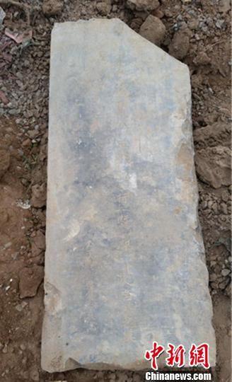 圖為發(fā)現(xiàn)的“清封武德騎尉張玉春之墓”碑。沁陽市文物局供圖攝