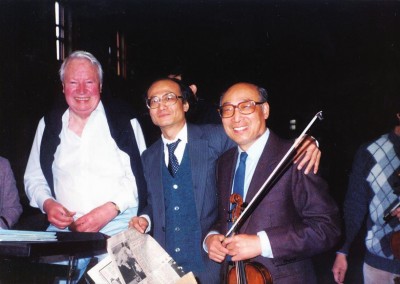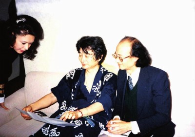 陳燮陽聆聽日本指揮家小澤征爾(中)的講述。