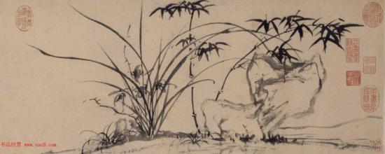 此手卷畫(huà)蘭、菊、竹三段,各有文氏親筆題詠。用筆寫(xiě)意,簡(jiǎn)率之中見(jiàn)生動(dòng)秀逸之致,墨色清潤(rùn)淡雅,顯示了詩(shī)、書(shū)、畫(huà)結(jié)合的筆墨境界。中國(guó)傳統(tǒng)文化以擬人化的手法,通過(guò)褒揚(yáng)蘭、菊、竹的自然屬性而歌頌或表彰文人的道德品質(zhì),體現(xiàn)了中國(guó)花卉畫(huà)的特殊功能。