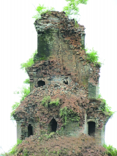 湖南江永縣文峰塔在暴雨中坍塌