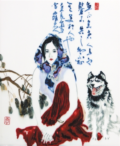 透過(guò)滿是瑩彩的瓷板畫靜靜觀望,英雄與佳人之間蕩氣回腸的愛(ài)情故事正在上演,畫面把項(xiàng)羽末路長(zhǎng)歌當(dāng)哭,虞姬盛裝舞劍的悲壯一幕表現(xiàn)得委婉細(xì)膩,淋漓盡致。在簡(jiǎn)練的筆墨中,表現(xiàn)出點(diǎn)、線、面的意趣和豐富的色彩層次,并著重探索作品的內(nèi)涵情感,傾心于對(duì)社會(huì)、對(duì)人生、對(duì)自然的抒情,借此寄托自己的藝術(shù)理想和審美情趣。一幅《霸王別姬》充分展現(xiàn)了藝術(shù)家的人文情懷及高超嫻熟的繪畫技藝。作為景德鎮(zhèn)顏色釉方面的行家里手,李菊生在顏色釉上畫裝飾人物畫方面的造詣達(dá)到了出神入化之境,令人嘆為觀止。