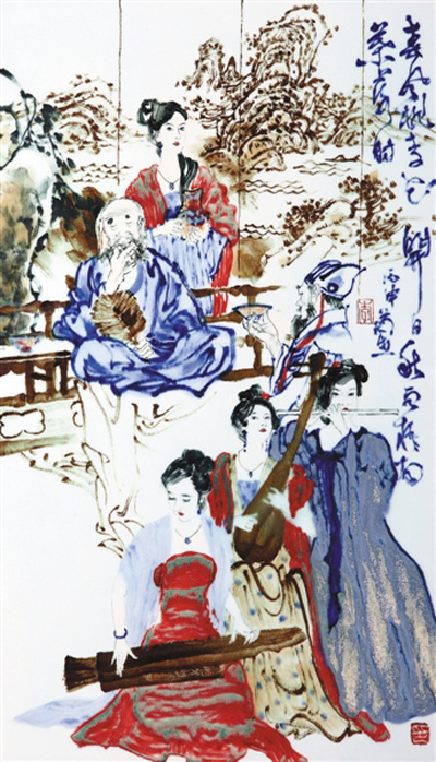 李菊生畫“鸚鵡前頭不敢言”,畫“暗香浮動(dòng)”,畫“出水芙蓉”,畫“西域麗人”,畫“琵琶行”。這些作品中的女性有的柔美溫婉, 楚楚動(dòng)人,有的矜持內(nèi)斂,有的羞澀怯懦。歌德說(shuō):“羞澀是大自然的一種秘密,用來(lái)抑制放縱和欲望,它順乎自然的召喚,永遠(yuǎn)和善良、德行和諧一致?!边@是女性人性純真的流露。
