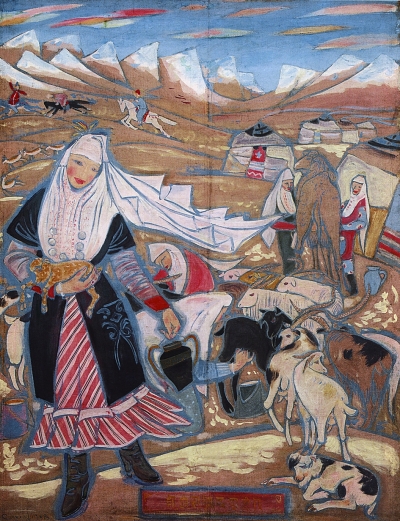 是什么樣的情懷,讓董希文能夠做出這樣一個符合歷史潮流的正確選擇呢?那就是他對祖國和人民深切的愛。而共產(chǎn)黨愛國愛民的主張和行動,讓他發(fā)自內(nèi)心地擁護和向往。作為一個畫家,畫筆自然是董希文表達自己心境的最好工具。創(chuàng)作于1948年的《哈薩克牧羊女》,無論從畫面的內(nèi)容抑或是形式上來看,都能很好地傳達出董希文藝術(shù)中滿滿的民族情懷。