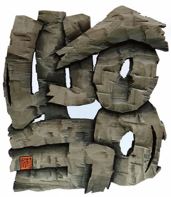 總體來看,藝如樂圖是一位成就卓著又勇于探索的藝術(shù)家。他在國內(nèi)的書法藝術(shù)界獨樹一幟,畫、書、印、刻字等多種藝術(shù)形式的探索為他的成功奠定了堅實的基礎(chǔ)。他的書法有凝練蒼樸、金石鑄鑿的味道,刻字更是他綜合藝術(shù)素質(zhì)的高度體現(xiàn)。他以書法為基礎(chǔ),將傳統(tǒng)的陰刻、陽刻、透雕、浮雕等融會貫通,并結(jié)合繪畫、雕塑、裱裝、設(shè)計、裝置等藝術(shù)手法,將漢字和蒙古文字的形態(tài)在二維、三維空間中得以完美呈現(xiàn),大大增強了作品的視覺擴張力和奇觀性。