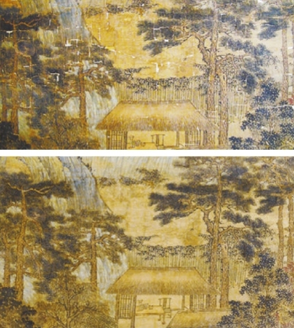 更進(jìn)一步的話,如何看待傳統(tǒng)書畫,這個(gè)問題也值得大家去思考。人們一般說起古代遺存,往往包括傳統(tǒng)書畫,因?yàn)樗鼈儾粌H是藝術(shù)品,也具有文物屬性。從這一點(diǎn)考慮,在對傳統(tǒng)書畫進(jìn)行修復(fù)的時(shí)候,我認(rèn)為就不能僅僅關(guān)注外觀,還應(yīng)將著眼點(diǎn)更多地放在其自身價(jià)值的保護(hù)上。
