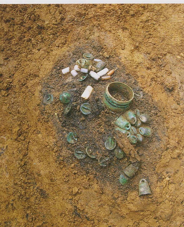 第二天一早,興奮了一夜的隊員們再次來到出土這些奇形怪狀器物的祖家老包小土丘上,在朝陽的映襯下,那黃色的土地顯得異常的親切,仿佛它們已等了兩千年,今天終于等來了破解這塊黃土地下掩埋著的神奇密碼的考古隊。在祖家老包附近不同的土丘上,隨著犁鏵的條條犁痕,一座座土坑墓的墓邊和里面夾雜著大量紅燒土顆粒的墓葬填土異常醒目,不用說,這是一處與此前發(fā)掘的漢墓不同的青銅時代墓地。考古隊也不急著收隊回貴陽了,將正在發(fā)掘的漢墓清理完后,迅即轉(zhuǎn)戰(zhàn)祖家老包,當年即清理了25座夜郎時期不同于漢墓的地方土著民族墓葬,發(fā)現(xiàn)了非常奇特的“套頭葬”和一批獨具地域特色的青銅器,包括容器、兵器和裝飾器等,真正揭開了貴州夜郎考古的序幕。