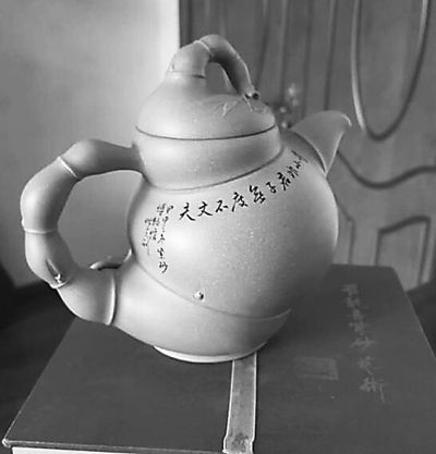 有一件事讓宇飛特別自豪——2005年,長春某博覽會,閑庭信步的他走到一紫砂壺展區(qū),一把歪歪扭扭的壺吸引了他的目光。他對這把壺大加贊賞,稱這把壺看似失去平衡,但在一個更高的層次上再度找到了平衡。店主人沒想到在長春能遇見讀懂它的高人,非常高興,像嫁姑娘一樣,把這把壺轉(zhuǎn)讓給了宇飛。事后他告訴宇飛,這把名叫“風(fēng)度”的壺剛剛被故宮博物院等權(quán)威機構(gòu)評為“2005年紫砂十大茗壺金獎”。店主人就是這把壺的設(shè)計者——宜興中國紫砂博物館首席設(shè)計師、國家高級工藝美術(shù)師崔龍喜先生。這個壺他總共才做了三把。
