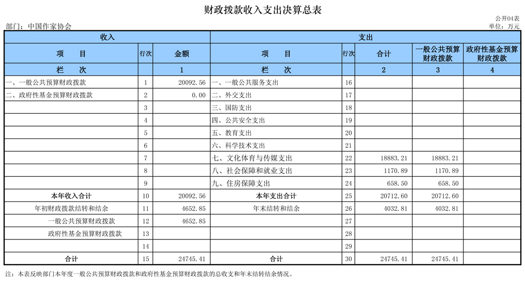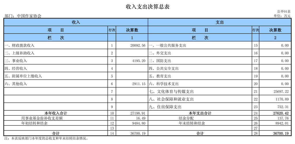 2015年中國作家協(xié)會部門決算報表如下: