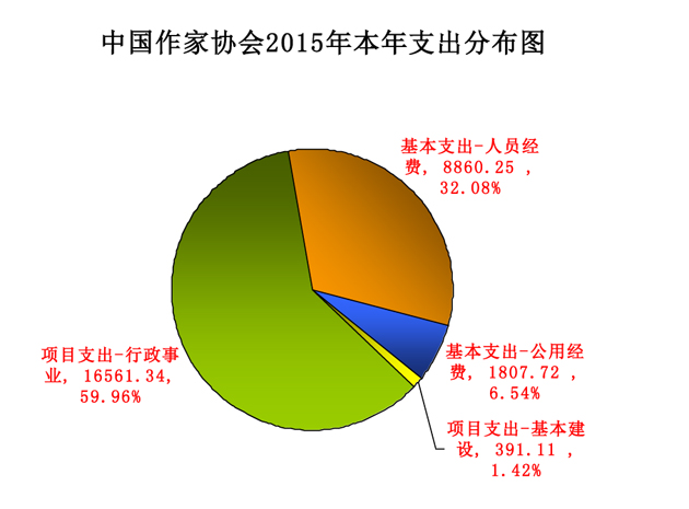 中國作家協(xié)會2015年本年支出合計27620.42萬元,其中: