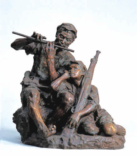 潘 鶴:我希望現(xiàn)在的青年雕塑家要用真情實感做雕塑,因為虛假的感情體現(xiàn)在雕塑上將沒有生命力。如果為了錢,那就不如改行做生意。藝術(shù)是充滿感情的,是代表真善美的,怎么能成為牟利工具?人們說現(xiàn)在這樣的狀況是因為藝術(shù)推向了市場,那愛情能推向市場嗎?我在上世紀(jì)70年代之前做了百余個雕塑,完全沒人給我一分錢,包括后來進(jìn)入教科書的《艱苦歲月》等作品,都是有感情要抒發(fā)才做雕塑。到了70年代后期,為國家做的雕塑才有報酬。但是我堅持一點,一定要有真情實感。