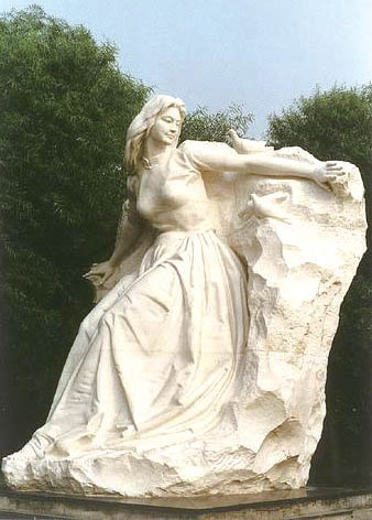 潘 鶴:高度有限制,就從寬度上考慮。雕像橫向兩側(cè)擴展,基座上的少女上身前傾,雙手向后護(hù)住象征和平的白鴿,所以,從視覺上看,整個雕像體積寬大,有分量。