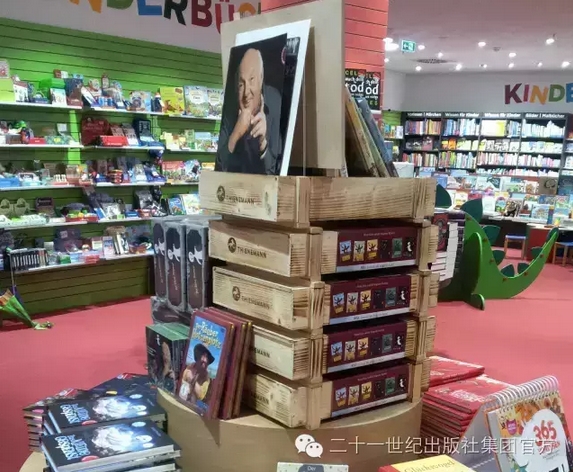 此外,程瑋獲得提名的翻譯作品《大盜賊》,是德國著名兒童文學(xué)大師奧得弗雷德·普魯士勒的重要作品。下面這張照片,是幾年前我在法蘭克福書展附近的一家書店隨手拍下的。普魯士勒的《大盜賊》和他的《小女巫》《小幽靈》《小水精》(后三種的中文版收入了“彩烏鴉系列”),碩大的木箱禮品裝,碼放在書店中央最顯眼的位置。