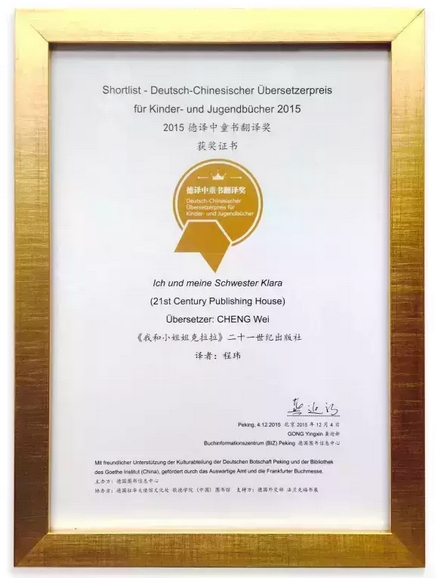 和程瑋后來的合作是請她做譯書,譯的仍是“彩烏鴉”圖書。程瑋出手不凡,她翻譯的《我和小姐姐克拉拉》去年12月獲了首屆德譯中童書翻譯獎。