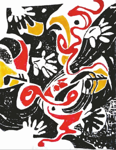 彥涵在改革開放之后創(chuàng)作的令人驚嘆的新形式作品——在始終“標新立異,無所畏懼”的自我要求中,不論東方西方,不論抽象具象,只要是精華,彥涵都要讓它們“為己所用” 。在大型彩墨畫《迸裂》 、套色木刻《框架里的蘋果》這樣的作品里,我們很難用“抽象、具象” 、“流派、風格”這樣的概念來進行定義,他所采用的形式是高度純粹的,但作品的內(nèi)涵是雋永綿長的。