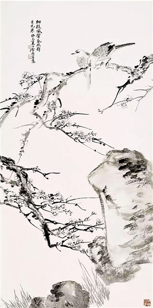 談及心目中的藝術典范,陰澍雨毫不諱言對黃賓虹的評價,認為他“不是在藝術形式的創(chuàng)新,而是呈現(xiàn)一個大的繪畫境界”?!扒嗵侔讞睢保鳟嫾倚煳寂c陳淳的合稱)更是他所追求的一種高度?!拔覍W習更多的是‘青藤白楊’,特別是明代花鳥畫大師陳白陽?!痹陉庝暄壑校@位明代中后期活躍在蘇州一帶的重要花鳥畫家,擁有比較豐富的技法形態(tài),深諳花鳥畫中的語言,同時擅詩文書法,全面的文化修養(yǎng)綜合造就了其繪畫風格。也因此,陰澍雨表示,從氣質(zhì)來講,他比較傾向于陳白陽的繪畫風格。