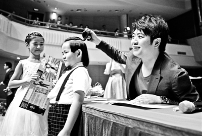 昨天,近千名琴童歡聚在北京音樂廳,鋼琴家郎朗在這里舉辦了《郎朗鋼琴啟蒙教程》的首發(fā)式,并現(xiàn)場(chǎng)指導(dǎo)六位小朋友彈奏教程中的內(nèi)容。
