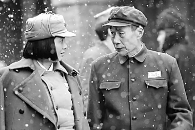 電影開演,銀幕上是黑白色調,茫茫風雪中,一些被動員來支疆的女戰(zhàn)士因不滿上級介紹對象,紛紛帶著情緒要離去。這時,一輛軍用吉普車駛來,甘祖昌出現(xiàn)了。他不是來阻止、批評她們的,而是來送送這些女戰(zhàn)士,他說,無論去留,你們都是建設祖國的好青年!一組簡短的鏡頭,演員李雪健就把一位經(jīng)歷過二萬五千里長征,一身英氣、可親、可敬的形象,定格在銀幕上。陶慧敏飾演的龔全珍——那個有著一雙純情、羞澀、美麗的大眼睛的女孩也在場,這是她初識“甘部長”。隨后,影片跟從故事的發(fā)展,由黑白片轉為彩色片,于細節(jié)處展現(xiàn)甘祖昌和龔全珍這對革命伉儷扎根家鄉(xiāng)、建設家鄉(xiāng)的時代語境,其中既有對甘將軍艱苦奮斗的現(xiàn)實主義刻畫,也有對龔全珍一生相隨、大愛無私的浪漫描繪。