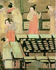 在飲食上,也很有講究。在七夕節(jié)前,婦人們便要以紅熬雞以及其他的時(shí)新果品,互相饋贈(zèng),取吉慶之意。負(fù)責(zé)果品進(jìn)貢的蜜煎局還會(huì)在市場(chǎng)上售賣水蜜木瓜。孟元老的《東京夢(mèng)華錄》中還記載售賣七夕物品的乞巧市的熱鬧場(chǎng)景,“自七月初一為始,車馬喧闐,七夕前兩三日,車馬再次壅遏,不復(fù)得出,至夜方散?!边@歡愉熱鬧的節(jié)日氣氛不難讓人想見宋代市民城市生活的美好。