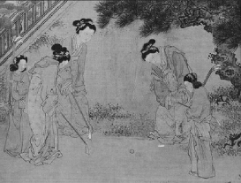 與此同時(shí),捶丸這項(xiàng)運(yùn)動(dòng)也頗受女性青睞。在明代畫家杜堇所繪《仕女圖》中,即有捶丸運(yùn)動(dòng)的場(chǎng)面。畫中女性頭梳高髻、寬袍大袖、有侍女陪伴,頗為怡然。
