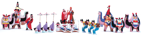 和前代“泥人張”相比,張锠的作品呈現(xiàn)出一種求新求變的趨勢,造型夸張簡潔、形色流暢統(tǒng)一的現(xiàn)代裝飾風格,使得這位第四代“泥人張”的辨識度很高。不過張锠所強調(diào)的裝飾性并非裝飾功能,而是一種藝術(shù)形式,是在限定的空間中利用點、線、面、色等形式語言和法則進行有序組合,強調(diào)單純和簡潔,強調(diào)冷暖對比以及明度、純度和面積的對比,利用對比求得豐富的變化。張锠坦言,這種變化來自他對數(shù)字化時代的應(yīng)對:“當代‘泥人張’要追求單純、簡潔,利用簡潔的對比方法,讓形和色形成感覺上的豐富。 ”