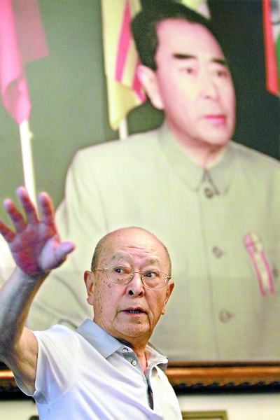 王鐵成家中最醒目的就是他扮演周恩來的大幅劇照。